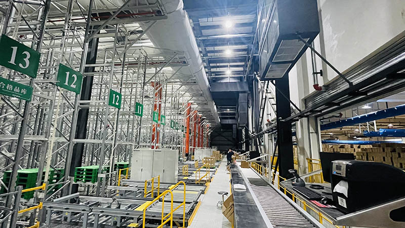 Warehouse 2 is a 4 story flat warehouse with a land area of 14,400 square meters and a building height of 24 meters. The third floor functions as a case picking area, equipped with a case 4D shuttle system and a case picking system. It is fitted with 78 case 4D shuttles, 6 GTP(goodstoperson) picking stations, 12 caseexchanging stations, and 31,200 case storage locations. The two warehouses are connected by a connecting corridor.